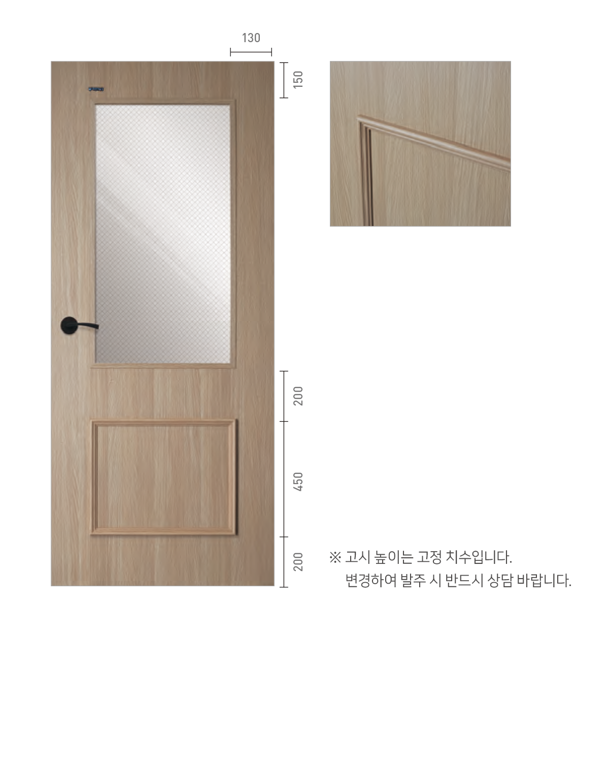 프라이버시를 해치지 않고 실내의 분위기를 확인할 수 있어 상업공간에 많이 쓰이는 도어입니다.