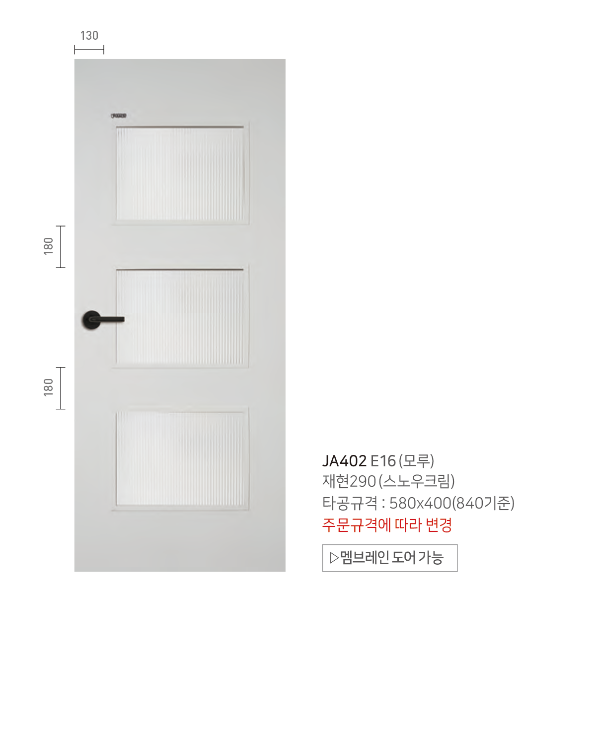 프라이버시를 해치지 않고 실내의 분위기를 확인할 수 있어 상업공간에 많이 쓰이는 도어입니다.