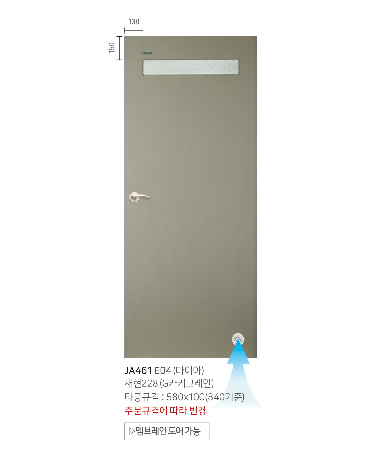 원이나 사각형 등 문의 일정한 부분을 오픈 시킨 도어로 밖에서 실내의 분위기를 느낄 수 있는 반 개방형 도어입니다.