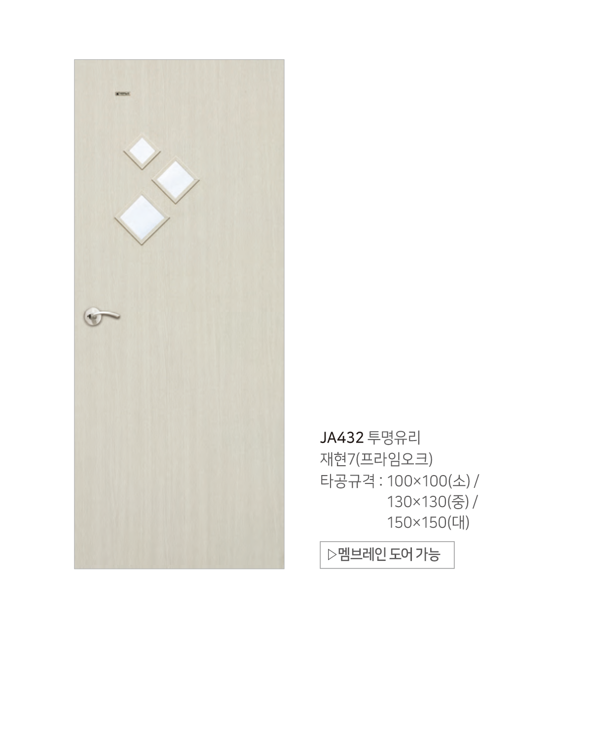 원이나 사각형 등 문의 일정한 부분을 오픈 시킨 도어로 밖에서 실내의 분위기를 느낄 수 있는 반 개방형 도어입니다.