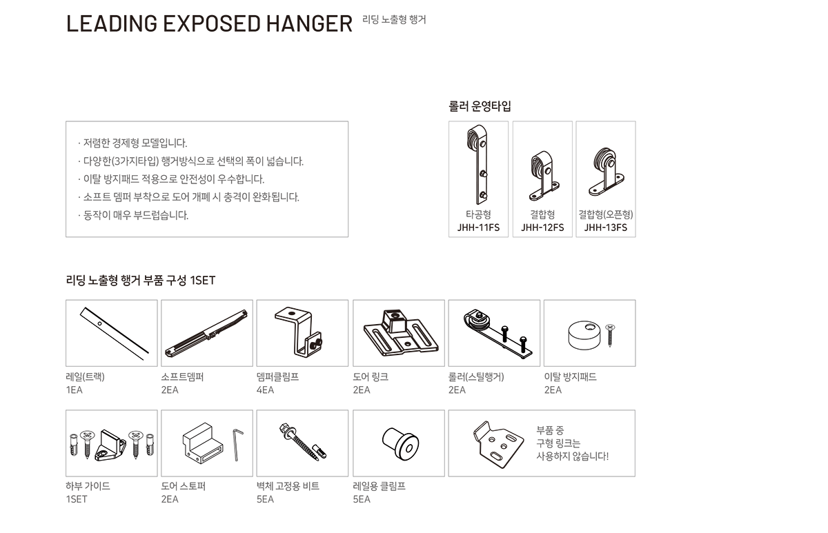리딩 노출형 행거 MODEL : JHH-13FS (결합형 롤러오픈타입)