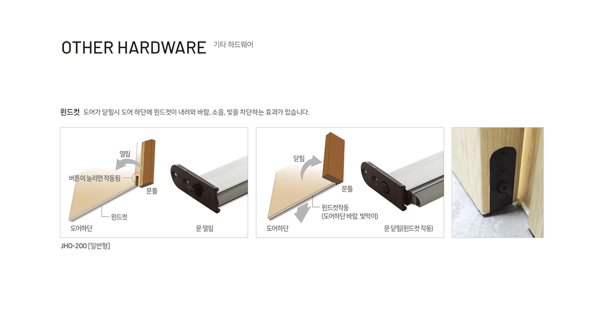 도어가 닫힐시 도어 하단에 윈드컷이 내려와 바람, 소음, 빛을 차단하는 효과가 있습니다.