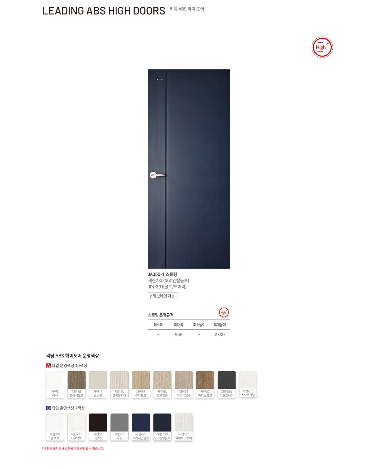 리딩 ABS 하이 도어 MODEL : JA350-1 (스트링)