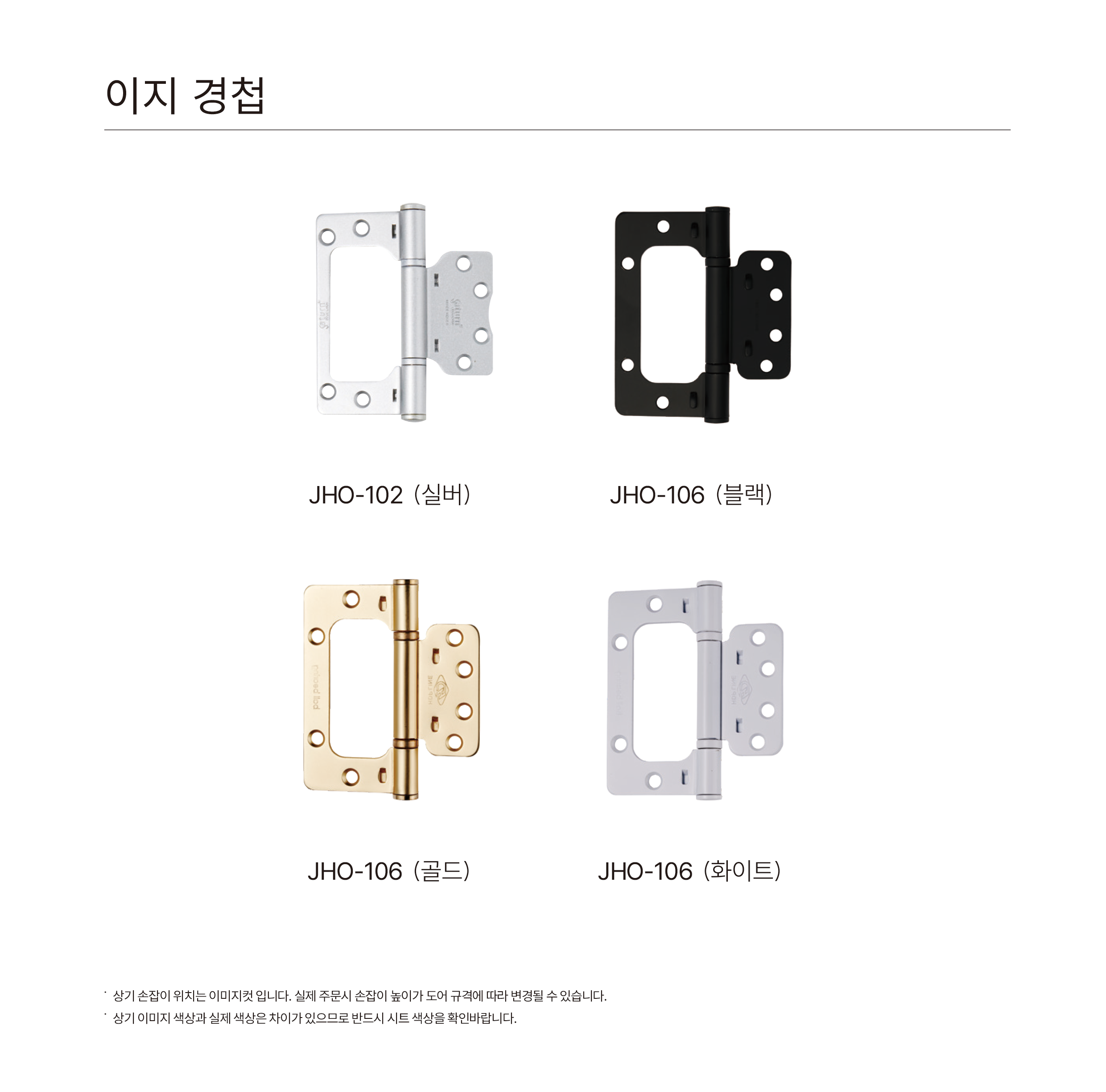 • 노블알판 도어, 타공 도어, 듀얼 도어 등 무거운 도어에는 이지경첩 보다는 일반경첩 사용을 권장합니다.